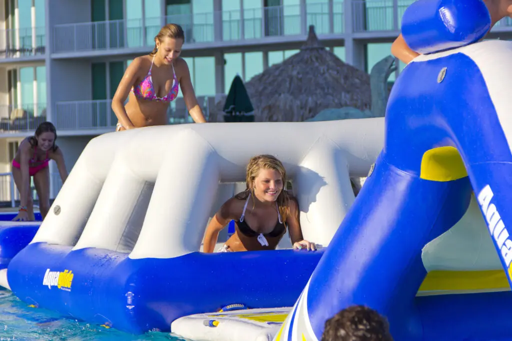 Het feestje begint met een uur vol uitdaging op het Aquapark – klimmen, glijden, springen en balanceren op een groot speeleiland op het water. Bij aankomst staat er al een feestelijk aangeklede tafel voor jullie klaar. Daar kun je de spullen veilig achterlaten voordat de kinderen het water op gaan. Na afloop is dit jullie eigen plek om bij te komen, te eten en verder te vieren.