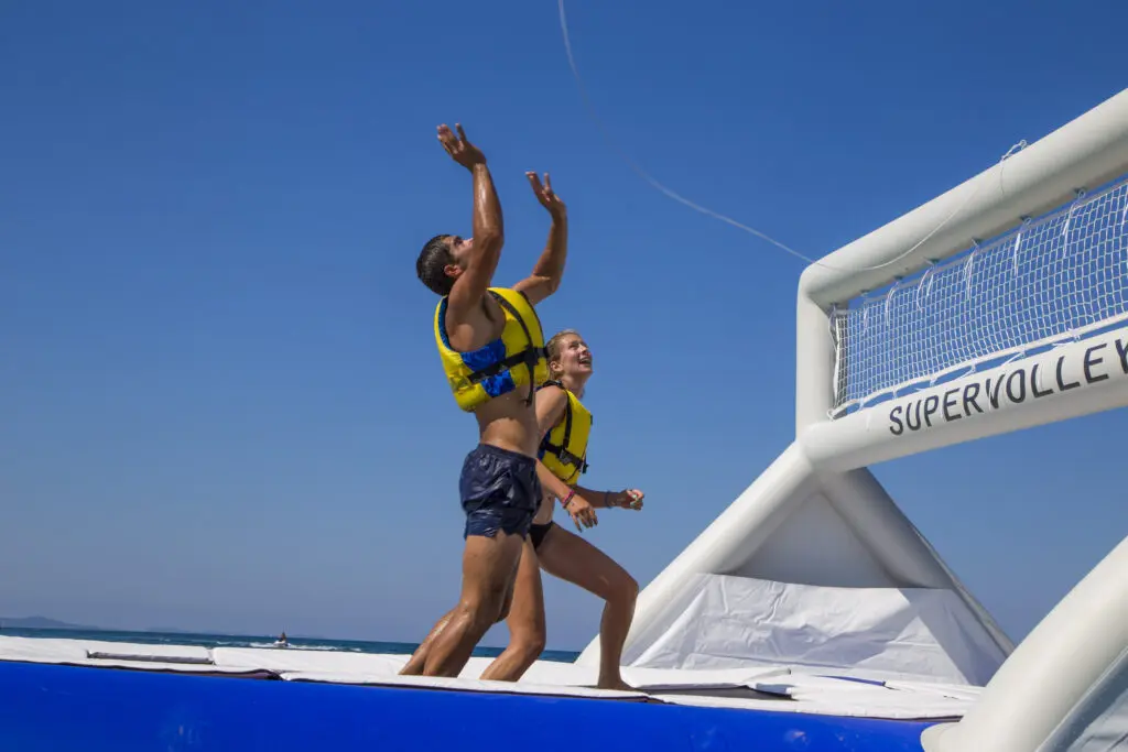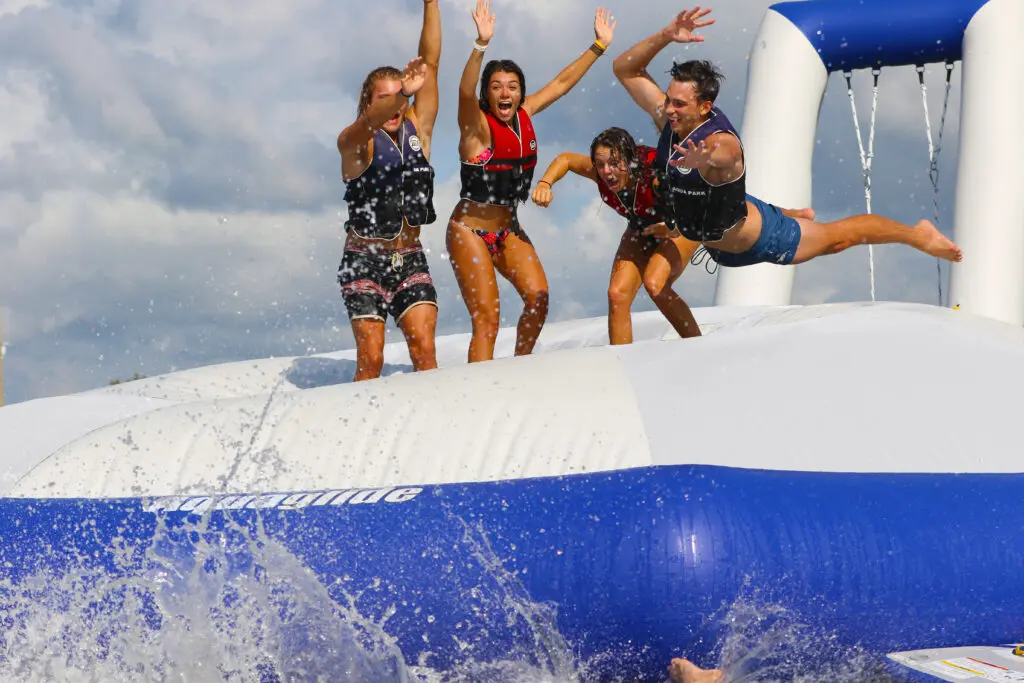 Het programma start met een uur vol actie op ons grote Aquapark – een uitdagend parcours van drijvende spelelementen waar deelnemers kunnen klimmen, glijden, balanceren en samenwerken.